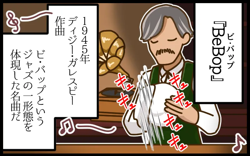 タイトルにもなっている「Bebop(ビバップ)」という言葉は、のちにジャズの新しいスタイルを指す名称として定着しました。もともとミュージシャンたちがスキャットで使っていた語感から生まれたと言われていますが、「この曲名からジャンル名が広まったのでは」という説が語られるほど、この曲の存在感は大きいものです。